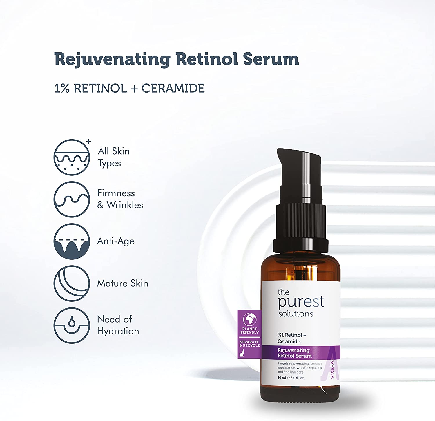 Le rétinol topique aide à prévenir les ridules liées au vieillissement naturel. L’induction de glycosaminoglycanes importants, connus pour leur capacité à retenir une quantité importante d’eau, et l’augmentation de la production de collagène contribuent à prévenir les rides et la perte d’élasticité. Le rétinol offre le soin anti-âge le plus efficace pour une peau lisse et jeune.